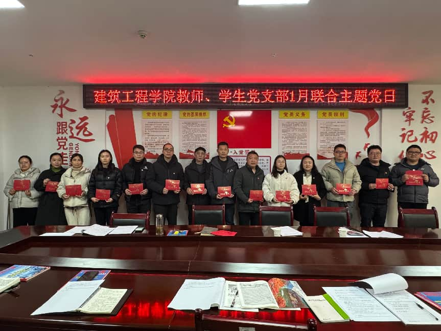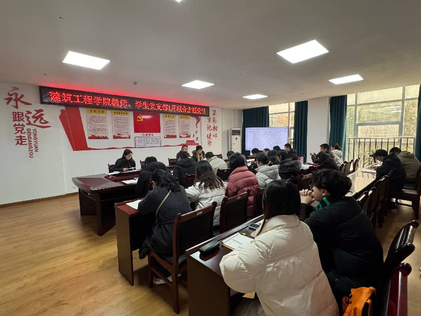 为深入贯彻党的二十届四中全会精神,准确把握“十五五”发展规划脉络,2026年1月14日,建筑工程学院教师党支部与学生党支部联合开展2026年1月主题党日活动。会议由教师党支部书记杨滨源主持,全体党员参加。