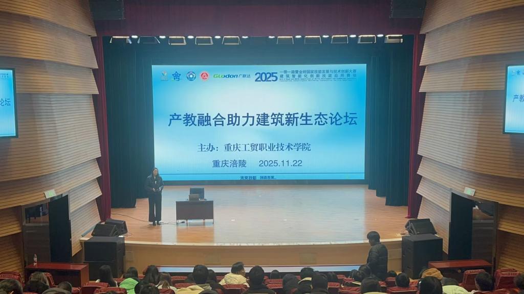 2025年11月22日,在2025“一带一路”暨金砖大赛建筑智能化创新技能应用赛项全国总决赛激战正酣之际,建筑工程学院在教育学院演奏厅举办了产教融合助力建筑新生态论坛。论坛由学院徐韵博士主持,全国70所中职、高职和本科学校参赛队领队及指导教师、学院学、师生代表150余人参加。
